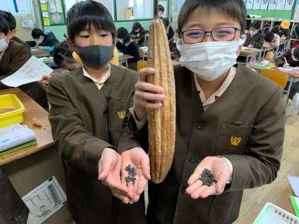 春からずっと観察を続けてきたことで、ヘチマや瓢箪がとのように育ち最後にはこんな風に種になるということがよくわかったようです。