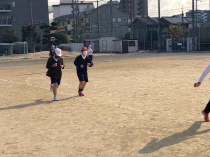 持久走は、5分間走にチャレンジしています。マスクをしたままなので、思うような記録は出せないようですが、自分のペースを更新していくことができるよう励ましています。