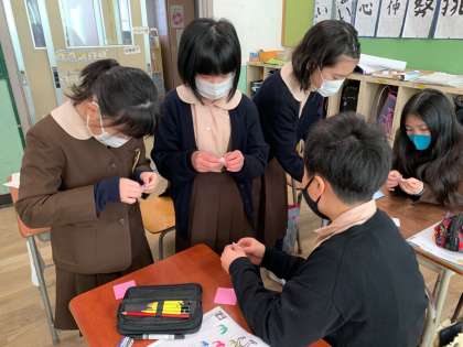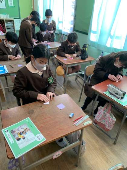 あじさいや、はなびをみんなで作りました。そのカレンダーは給食室に飾られます。