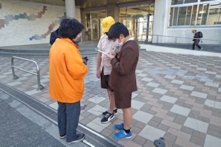 今朝、代表委員会児童が、見守り隊の皆さんに、インタビューをしました。毎日自分たちの登校を見守ってくださっていることに感謝の気持ちを伝える会を開く予定です。