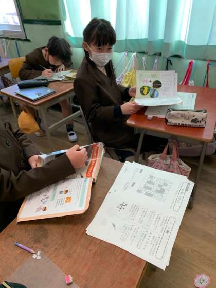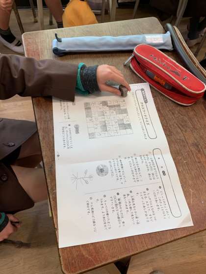 なかなか言葉がはまらず、子どもたちは頭を抱えていましたが、このような問題になると楽しいようで夢中になっていました。