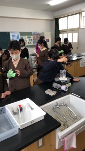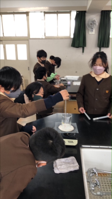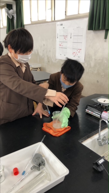 前回とけにくかったミョウバンの条件を変えるため、温度を上げてとかしています。