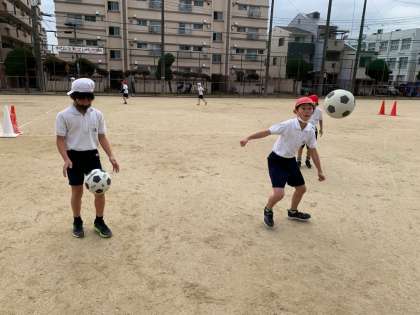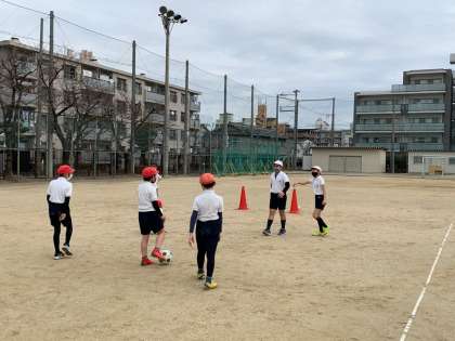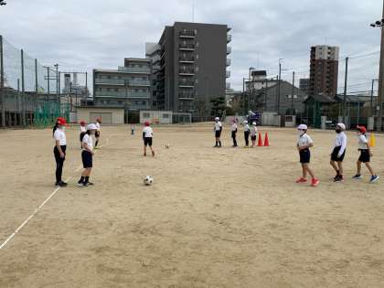 サッカーのチームが決まり、リーダーを中心に練習をしました。