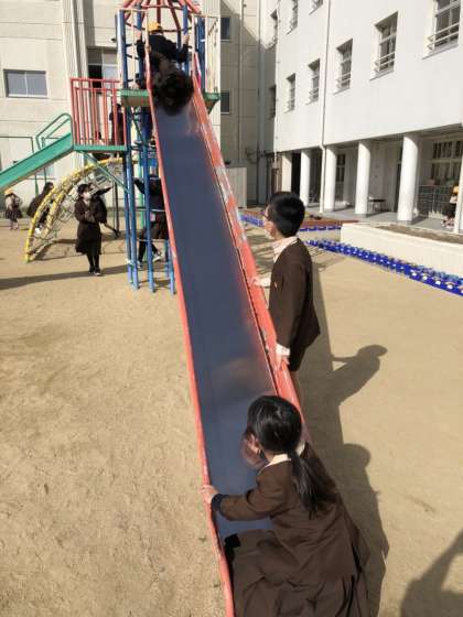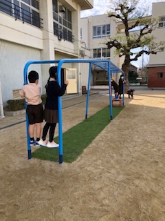 どんなものが音を伝えるのか、運動場に出て調べました。金属だけでなく、木やプラスチックも音を伝えることや、10m近くある手すりの端と端でも音がつたわることを発見しました。