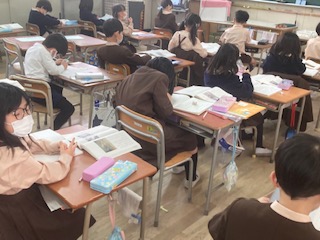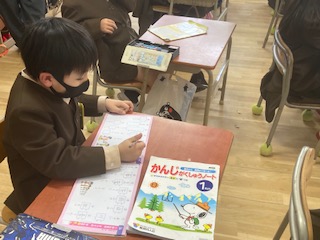 算数のプリント直しをしたり、「子どもを守る動物たち」を読んで、一番気に入った子どもの守り方をまとめたり、漢字の復習をしたりしました。課題に向かって自分の力で進めることができています。