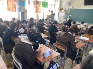 聞き取りのテストをしました。終わった子から読書をしています。読書好きの学年です。