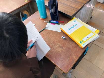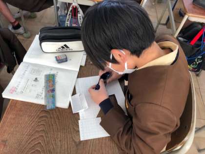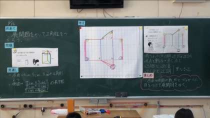 今日は、三角柱の展開図を方眼紙にかき、実際に組み立てました。