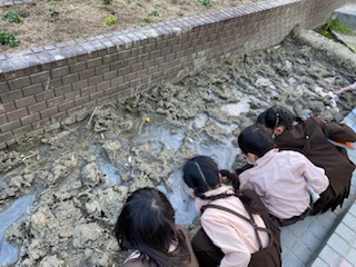 ビオトープに氷が張っていました。寒い朝を実感しました!