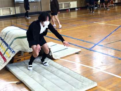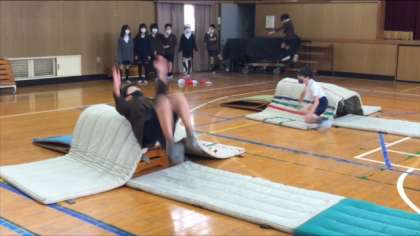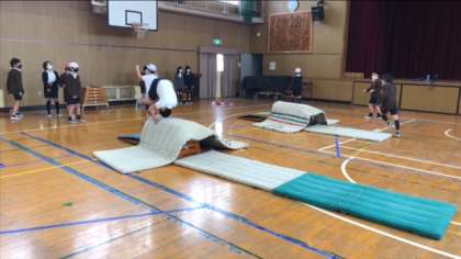 跳び箱で台上前転の練習をしました。今回は、マットを上に敷き、恐怖心をもたずにできるようにしました。