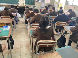 カッターナイフを使って、自分の思うように切り取っていきました。カラーの画用紙を組み合わせて、切り絵風の模様を作っていきます。