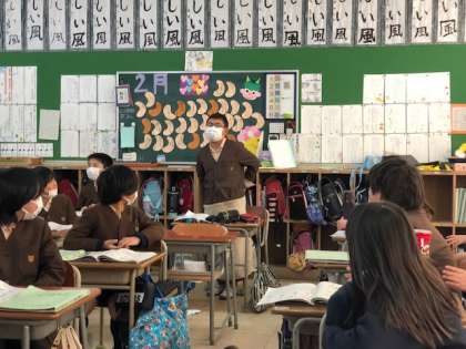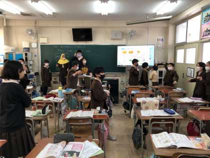 英語の学習では、コミュニケーションを取りながら楽しく活動しています。