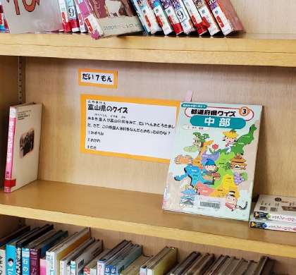 図書室のあちこちにちらばっている都道府県クイズに答えていきます。
