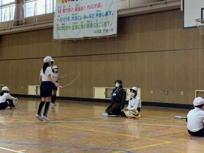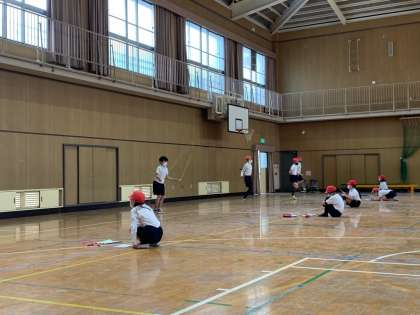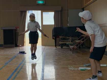 交差跳びや二重跳びが難しいと感じている子が多く、友達同士でポイントを伝えていました。