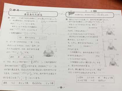 理科の学習では、実験の後必ず確認のプリントを行い理解を深めています。