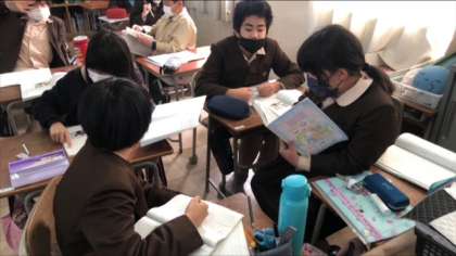 文中にこんなことが書いてあるから、このようなキーワードがあるからなどと根拠を示しながら自分なりの分け方を考え、友達に伝えていました。