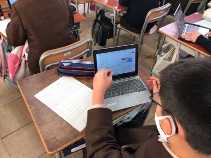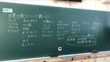 世界にはどのような国があるのか出し合い、その中から自分で調べたい国を決めて、その国の情報を一人一台パソコンで調べました。