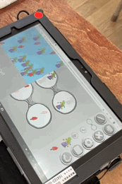 ビスケットというアプリを使って、自分が描いた絵を上下左右に動かしています。