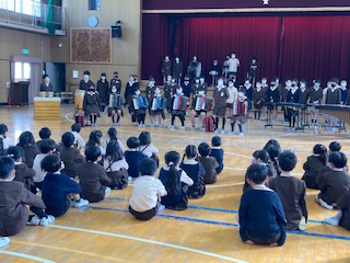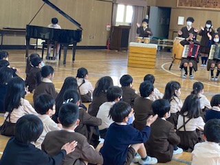 6年生が卒業の記念に下級生に「情熱大陸」の演奏をプレゼントしています。