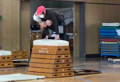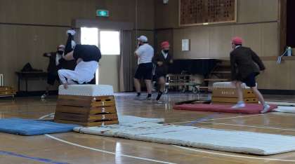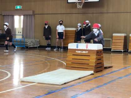 とび箱のテストをしました。開脚とび、かかこえこみとび、台上前転の3つの技を自分のチャレンジできる高さで練習してからのテストでした。
