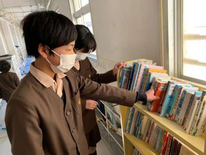 六年生が掃除の時間に奉仕活動をしています。