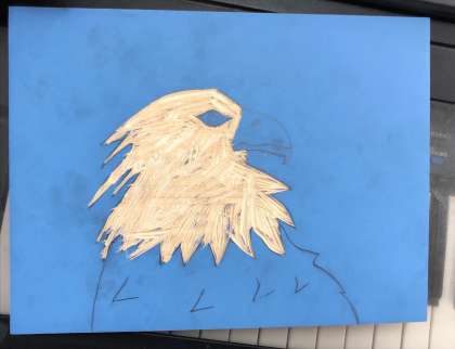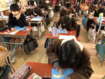 下絵を考えてから、彫刻刀を使って彫り始めました。完成が楽しみです。