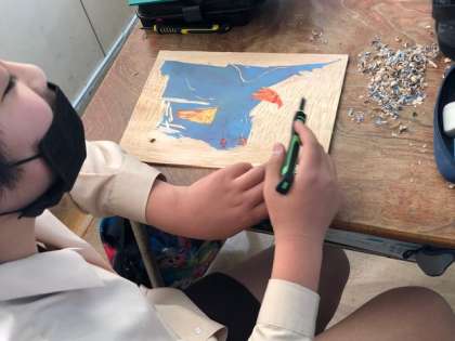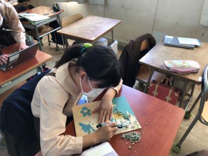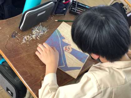 出来上がりの色をイメージしながら刷り重ねるのは、未経験のためなかなか苦労しています。完成まで気を抜かずがんばりましょう!>