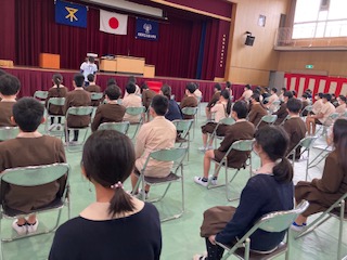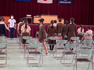 入場からざっと通して練習しました。明後日は予行です。