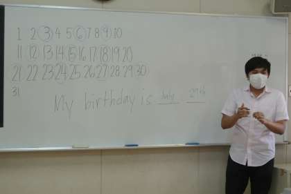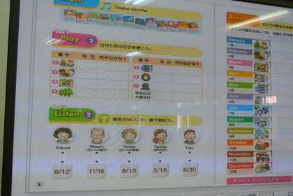 今日はnative speakerのMr.Jamesと一緒に外国語活動をする日です。6年生の今日のレッスンは自分の誕生日をいうことです。