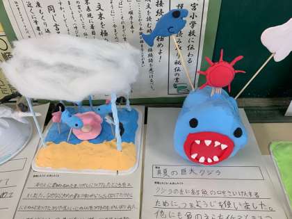 竹串や割り箸、トレー、紙などなどたくさんの材料を活かして自分のイメージする作品になりました!