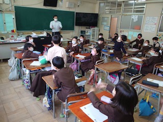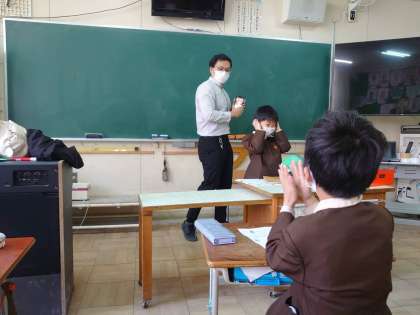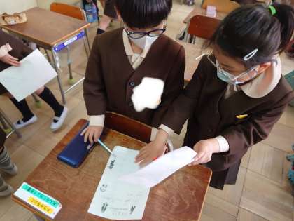 「what your name?」をキーワードに爆弾ゲームをしたり、お互いに名前を訊き合ってサインをしたりしました。最後には、ヒントを出してもらいながら、鬼滅の刃の善逸やマリオシリーズのルイージなどのキャラクターを当てるゲームも行い、楽しみながら英語を学ぶことができました。