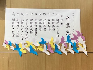 5年生が、6時間目、講堂を整えてくれました。明日は、第89回卒業式です。