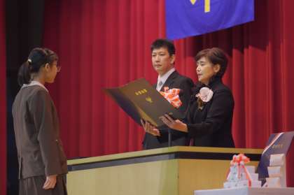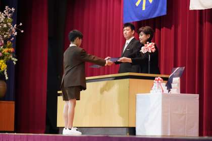 卒業証書を一人ずつ受け取りました。ファイルは、同窓会からのプレゼントです。