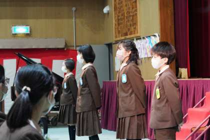 5年生の代表が、「お祝いの言葉」を述べました。6年生への尊敬と感謝と後を引き継ぐ決意にあふれていました。