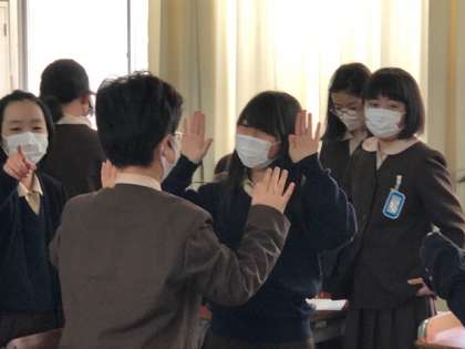 教室では男女仲良く和気あいあいと、手押し相撲がはやっていました。