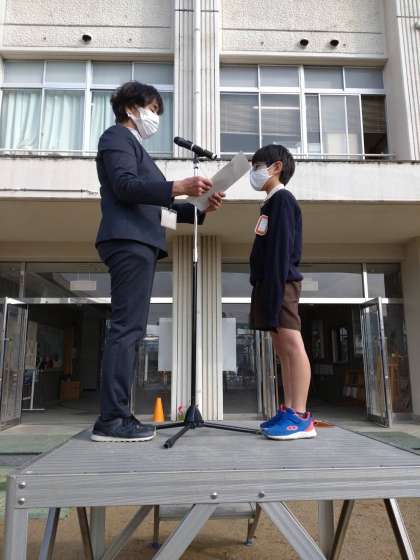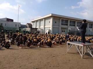 その後、生活指導の先生の話があり、最後に校歌を歌って終わりました。