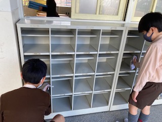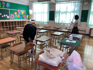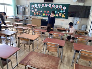 新6年生が登校し、明日の入学式の準備を手伝いました。式場や、1年生の教室や廊下などをきれいにしました。
