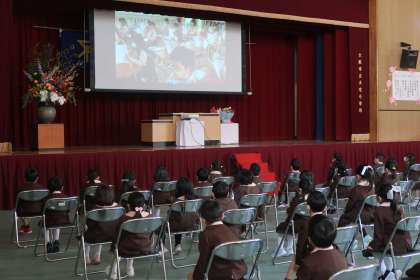 2年生からお祝いのビデオメッセージを視聴しました。