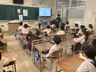 火曜日と木曜日の8時30分からは、「英語タイム」を全校で取り組んでいます。