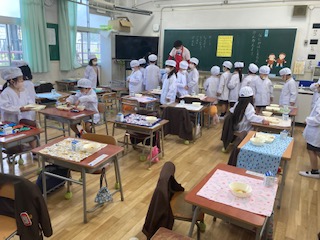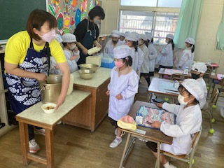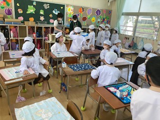 座って待っていた子達は、順番にご飯やおかずをもらいに行きます。