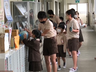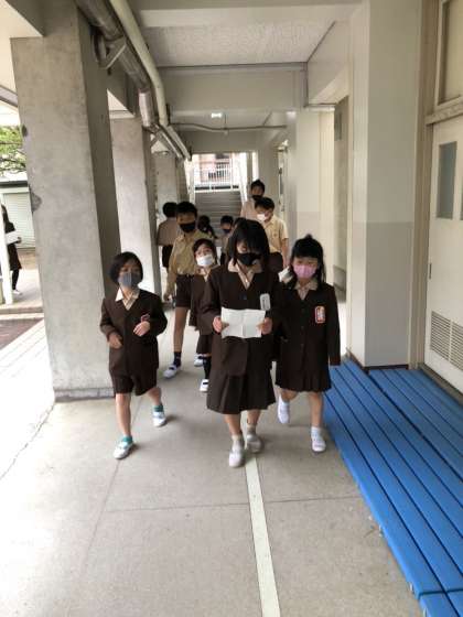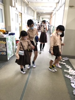 6年生に校舎内を案内してもらいました。廊下を静かに歩いて、たくさんの部屋を見て回りました。