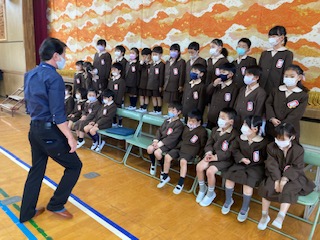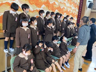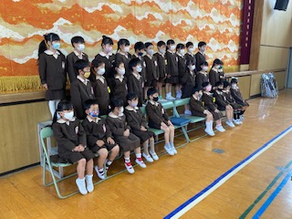 8時45分から学級写真を撮りました。良い姿勢で座り、最後にマスクを外して写しました。