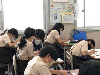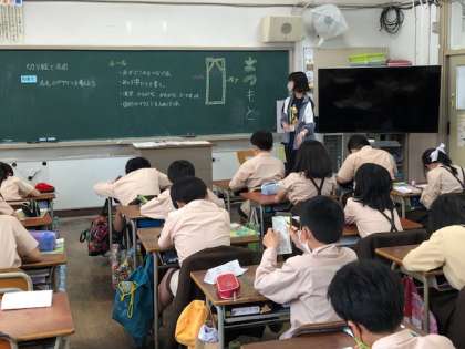 日直の札を工夫して切り絵の技法で作ります。今日は下絵をかきました。端の枠と繋げないといけないのが難しそうですが、みんな工夫して、おもしろいデザインを考えています。