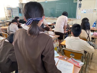自分の1日の生活を振り返ってみました。家庭科は、より良い生活を送るためにはどうすれば良いかを考えたり、実際に使える力をつけたりします。