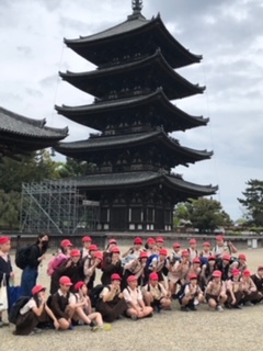 雨が止んだので、五重塔の前で学級写真を撮りました。