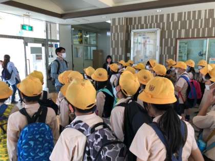 晴天に恵まれよい校外学習日和でした。おうちでも話を聞いてあげてください。