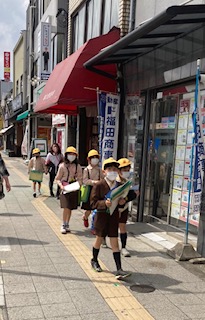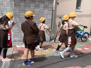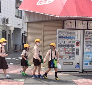 みんなで注意し合いながら、車に気をつけて歩いています。