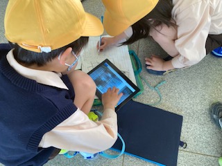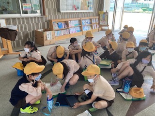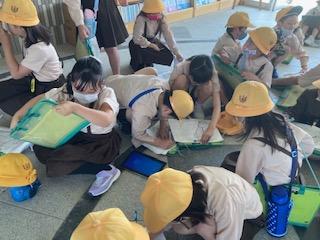 学校に戻ってきた班は、見つけたものなどを互いに確認し合いました。