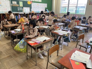 「かぜのゆうびんやさん」に出てくる人物の様子や気持ちを読み取りました。新しい国語辞典も使いました。