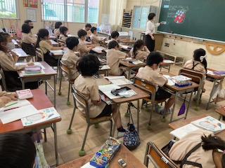 たし算の問題で、たす数とたされる数を入れ替えて式を立てた時、答えはどうなるか考え、確かめました。