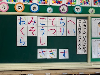 習ったひらがなは17文字。カードを使って言葉作りをしています。